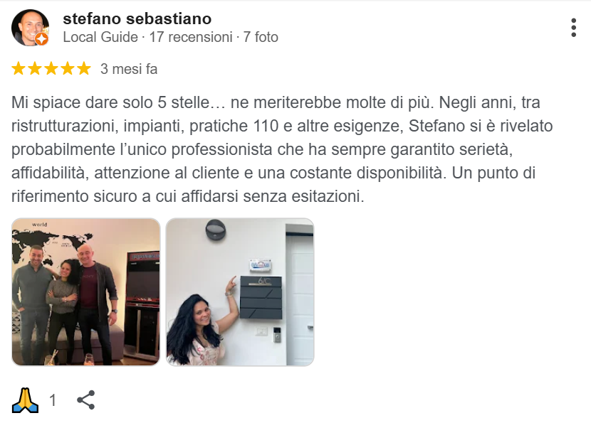Mi occupo dal 2012 di riqualificazione energetica e soluzioni di efficienza per il mercato residenziale e per PMI. Da anni ho la passione per il risparmio energetico e per la tutela dell’ambiente, cosa che mi spinge ad una continua formazione tecnica in tema di progettazione, dimensionamento e gestione degli impianti termici complessi. Ciò che adoro della mia professione è la possibilità di essere un punto di riferimento per chi, come me, crede nell’eco-sostenibilità e nell’energia pulita. Il mio obbiettivo è ben preciso: arrivare, col tempo, a più persone possibili e sensibilizzarle all’autonomia energetica.